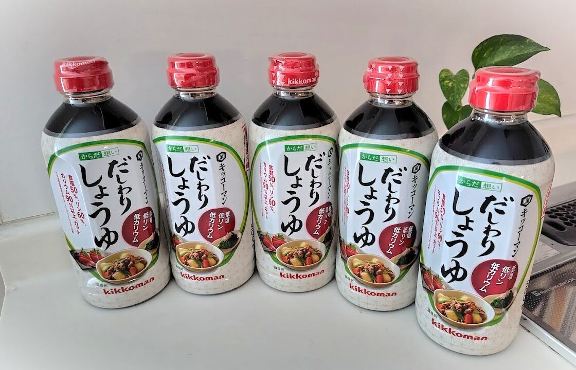 我が家はどこのスーパーにも売ってる一般的な減塩醤油じゃなく、腎臓病向けにお勧めだというキッコーマンの『だしわりしょうゆ』を愛用しています。