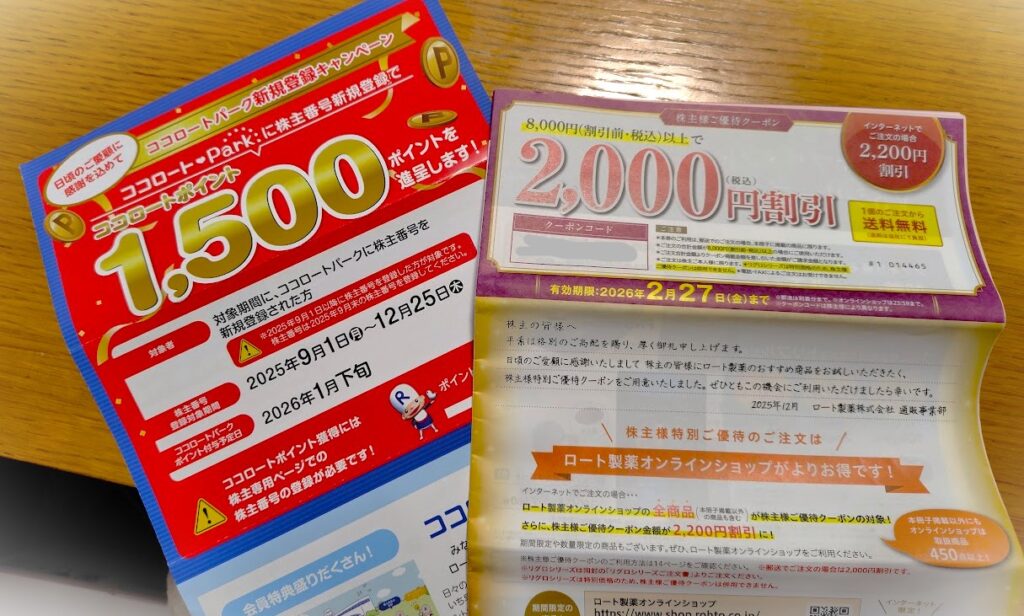 去年(2025年)、 優待目的でロート製薬を買いました。