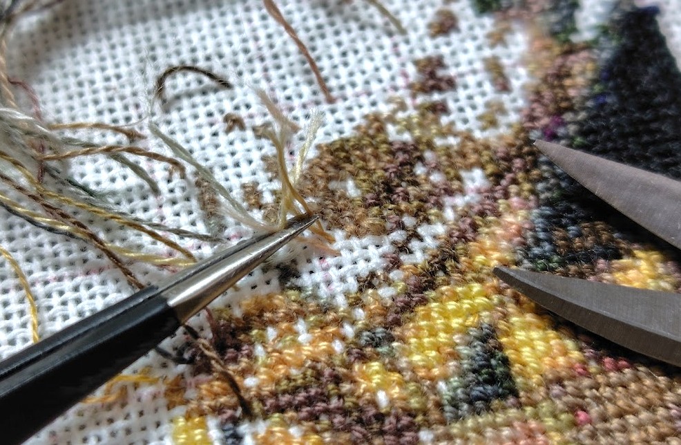 スクロールフレームを使って刺しているので、いちいち裏面を見ることは無く、