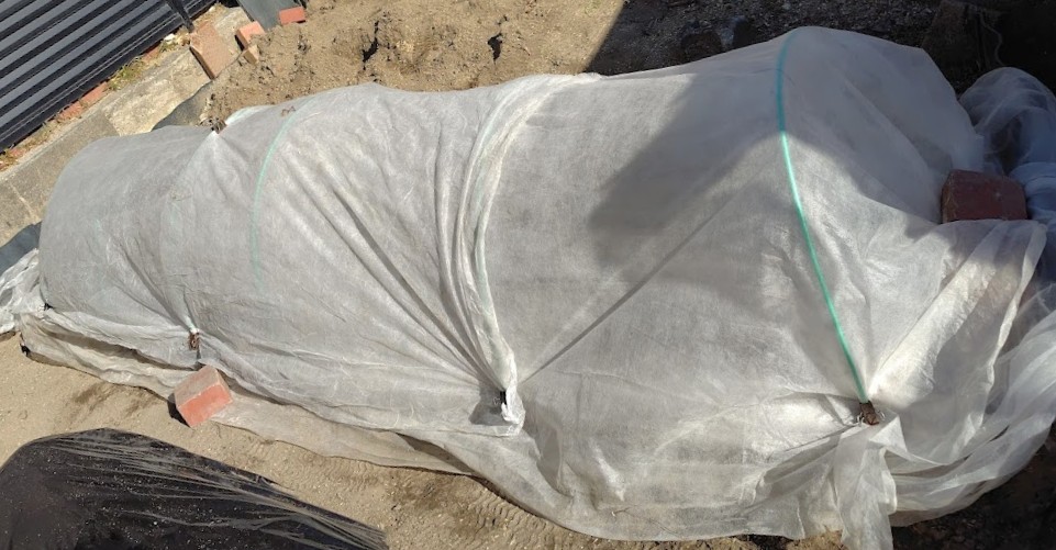 そして夕方、まだ夜は冷えるので不織布トンネル。