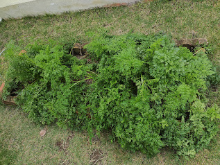 このまま置いてても、立派なニンジンが採れることは無理そうなので、諦めて全部掘り上げることにした。