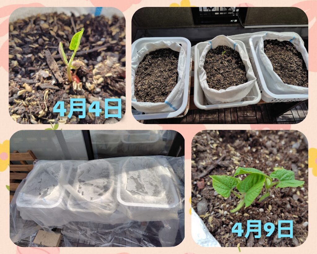 オクラも無事発芽して、これからの成長を見守るばかり。