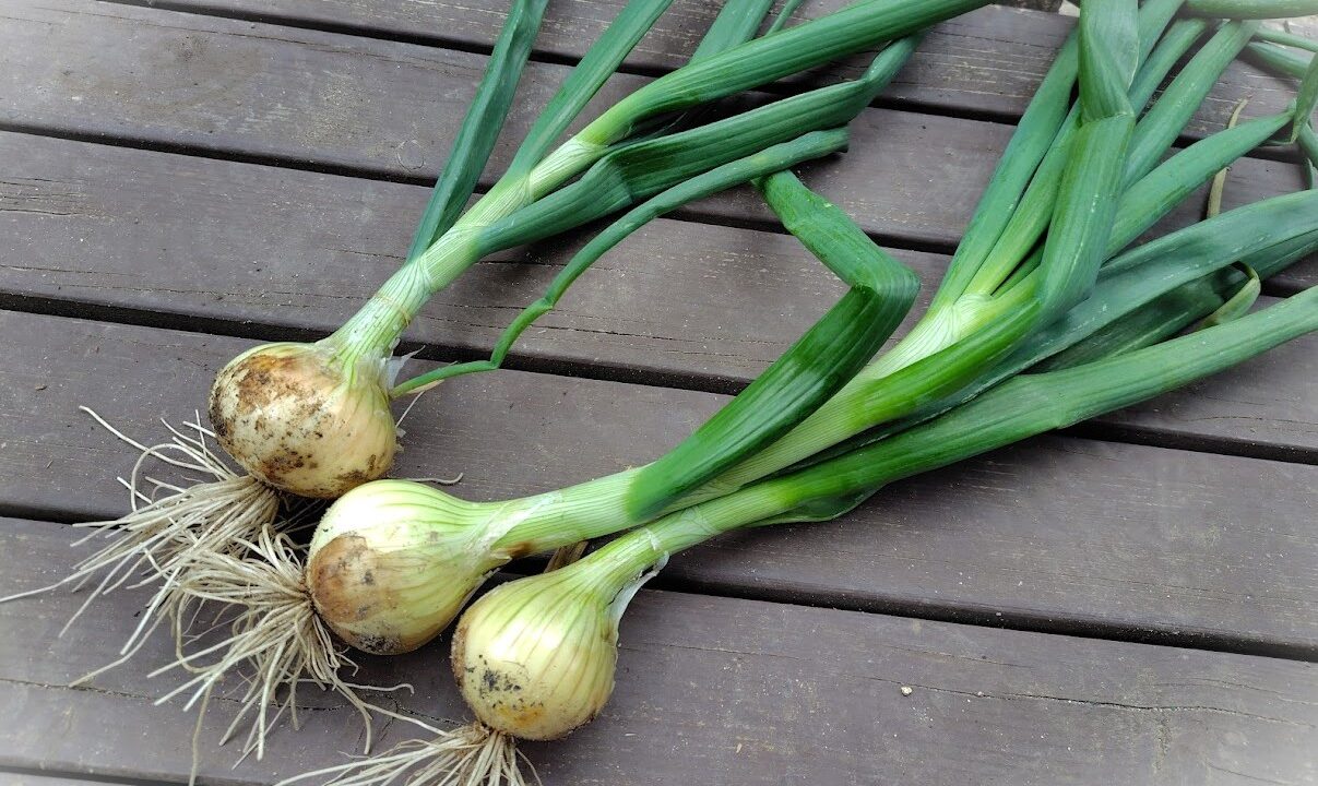 青ネギとしては十分食べ頃だけど、玉ねぎとしてはもう少し待ってから。