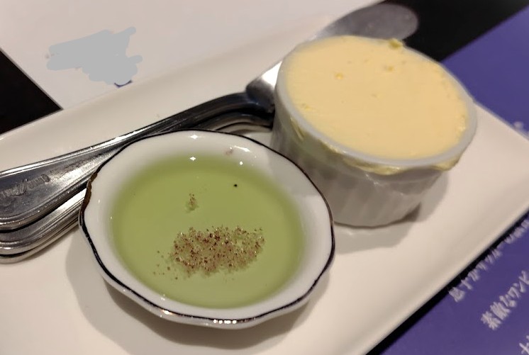 赤ワインの塩が入ってるのは見えるけど、私にはあまり塩味は感じらなかったバジルオイル。