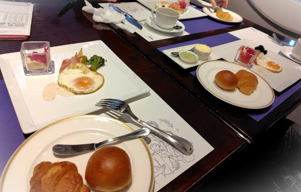 パン食べ放題 + 目玉焼きプレート + ドリンクバー