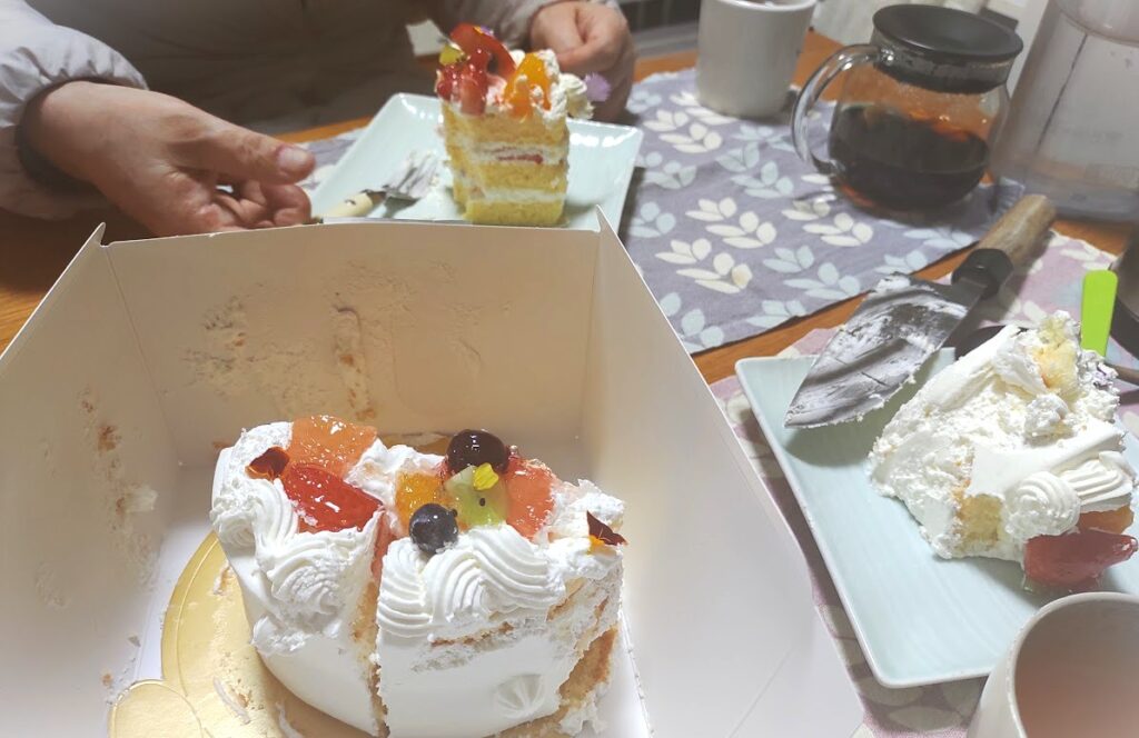 たまたま前を通ったら、クリスマスケーキ予約の人でいっぱいだったから、入って私はその場で買ってやった!