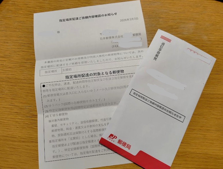 「指定場所配達依頼書」申し込んでて良かったと思った。